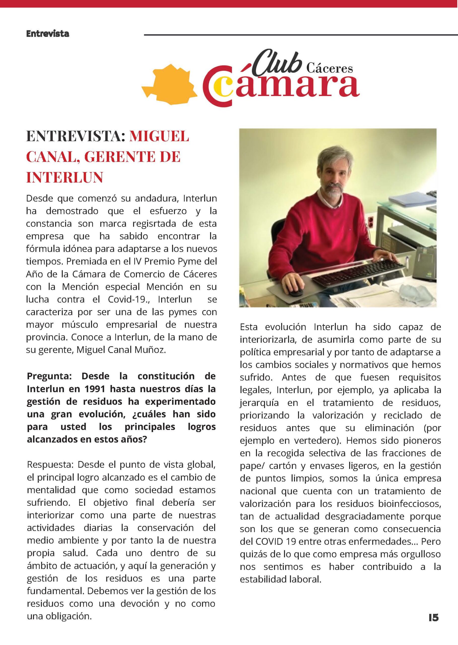 La Cámara de Comercio de Cáceres entrevista a Miguel Canal, Gerente de Interlun. La empresa ha sido premiada en el IV Premio Pyme del año.